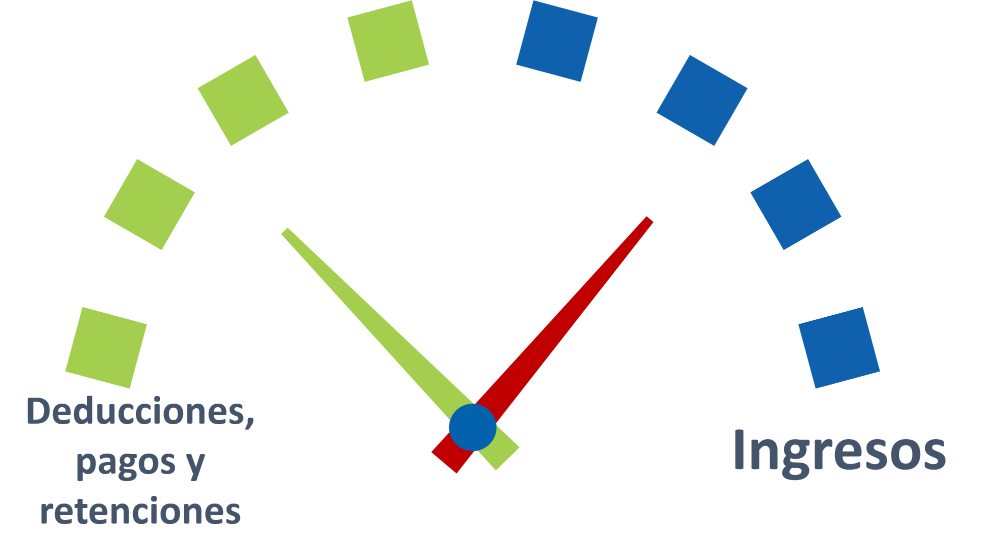 Si tuviste más ingresos que la suma de deducciones, pagos provisionales y retenciones (indicador rojo y cuadros azules en el esquema), entonces deberás pagar impuestos. En caso contrario (donde el indicador y los cuadros están en verde) puedes solicitar al SAT que te hagan una devolución.