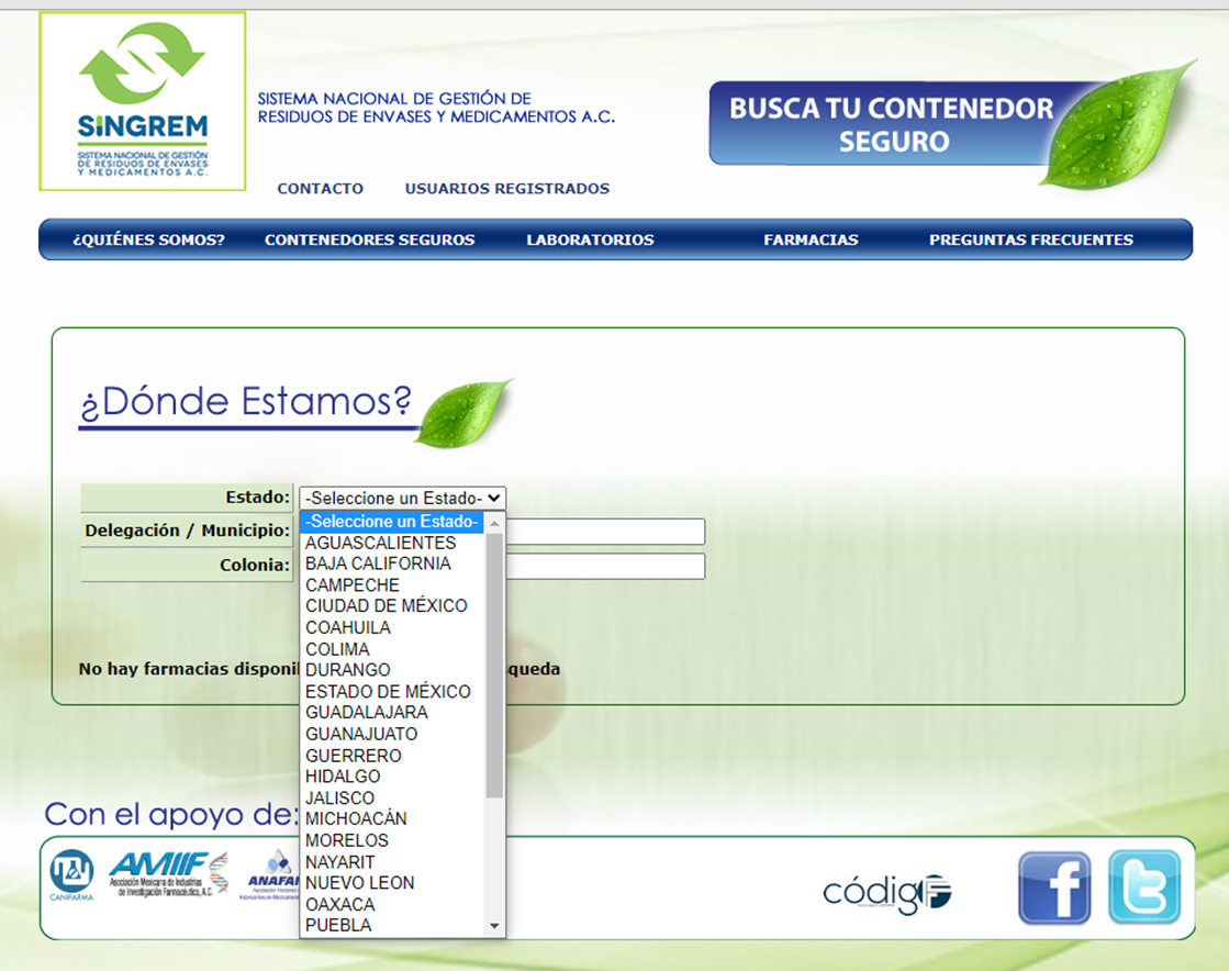 Es sencillo, con solo seleccionar uno de los estados que se listan en la siguiente imagen se desplegarán los puntos de recolección existentes. El esfuerzo es mínimo: concentrar las medicinas y llevarlas ahí nos ayudará mucho como sociedad.